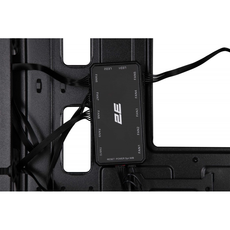 Для підключення, управління і контролю за комп'ютерною периферією і підсвіткою, в арсеналі корпусу є роз'єми 2xUSB 3.0,1xUSB 2.0 HD AUDIO+MIC, кнопки та індикатори Power, Reset, Power LED, HDD LED.