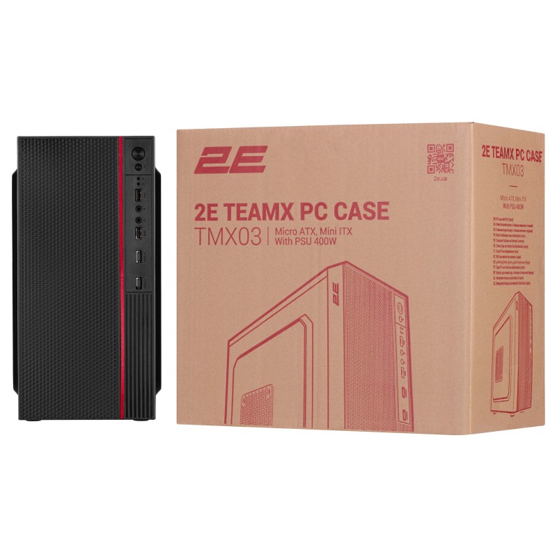 2E Корпус TeamX TMX03 з БЖ 2E ATX400W, 2xUSB2.0, 1x80мм, VGA 220мм, mATX, чорний