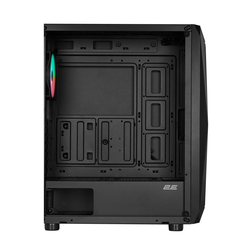 2E GAMING Aruba підходить для складання домашнього ПК та ігрових систем, має стильний дизайн та продуману вентиляцію. Максимальна довжина відеокарти – 300 мм. Корпус надає можливості монтажу достатньої кількості накопичувачів та численних плат розширення (7 слотів розширення). Передбачено встановлення  до 8 вентиляторів та охолодження для процесора висотою до 165 мм. Корпус адаптований до можливості монтажу системи рідинного охолодження на передню панель – радіатори 240/280/360 мм, на задню – один 120мм та на верхню – 240/280мм радіатори, додатково передбачено простір для акуратного розміщення кабелів. На верхній/нижній панелях знімні пилові магнітні фільтри.