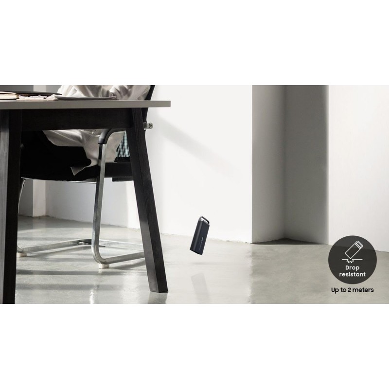 Портативний SSD Samsung T5 EVO Shield на 8 ТБ встановлює нові стандарти зберігання даних, поєднуючи величезну ємність, швидкодію та захищеність. Завдяки інтерфейсу USB 3.2 Gen 1 і роз'єму Type-C цей накопичувач забезпечує швидкість передавання даних до 460 МБ/с. Це дає змогу легко працювати з великими файлами, редагувати відео в реальному часі та виконувати швидке резервне копіювання.