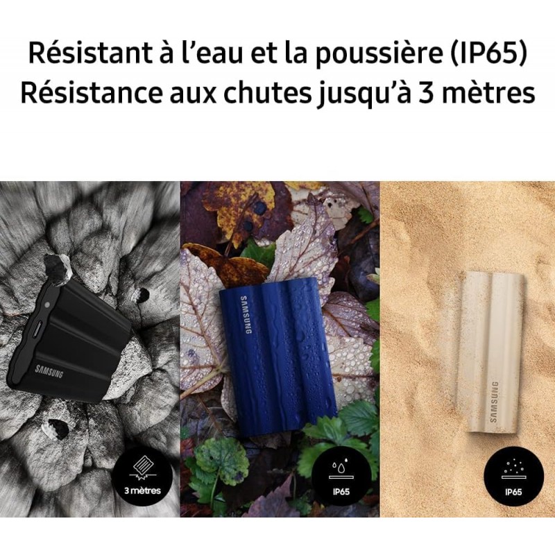 Samsung T7 Shield 2TB (MU-PE2T0K/WW) — це портативний твердотільний накопичувач, створений для тих, хто не готовий до компромісів у питанні швидкості, надійності та захисту своїх даних. Завдяки інтерфейсу USB 3.2 Gen 2, цей SSD забезпечує швидкість читання до 1050 МБ/с і запису до 1000 МБ/с, що у 9,5 разів швидше за звичайні жорсткі диски.