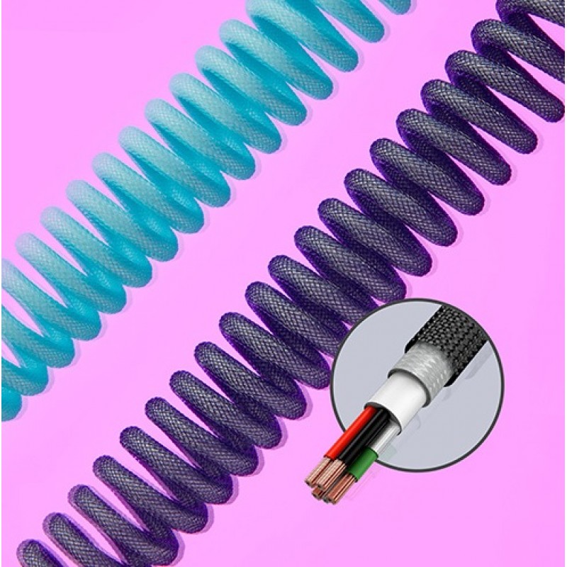 Кабель HyperX Coiled Cable використовує з'єднання USB-C з USB-A та оснащений 5-контактним авіаційним роз'ємом, що швидко від'єднується.