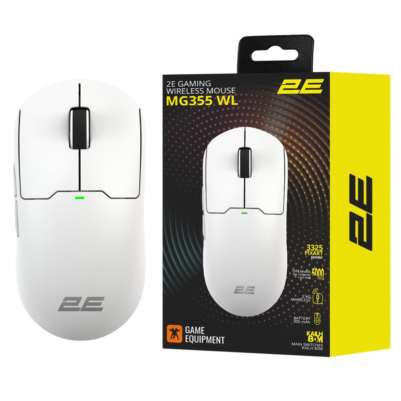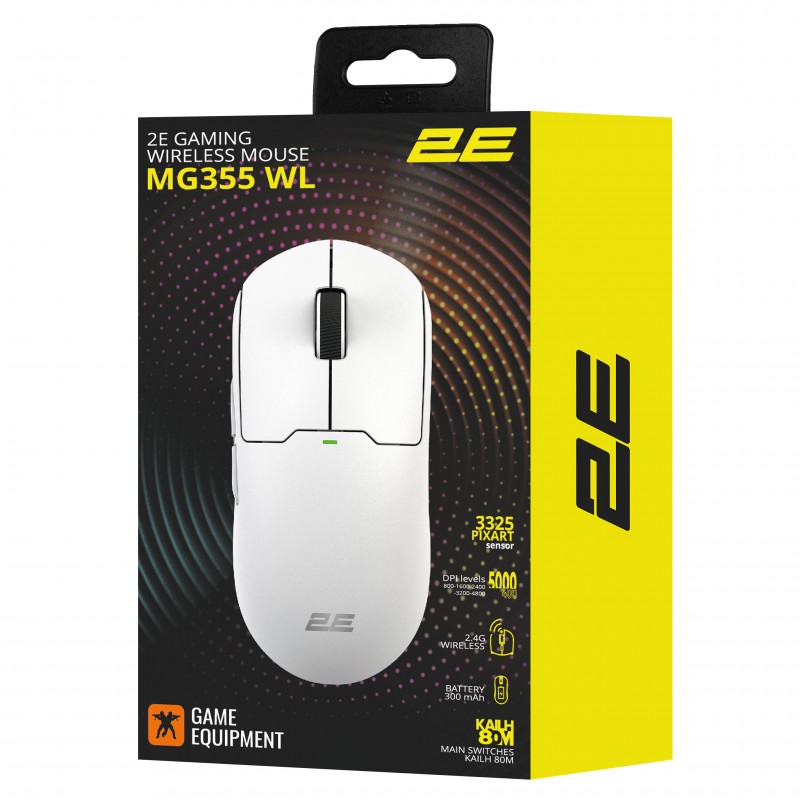 2E Gaming Миша MG355 WL, RGB, USB-A/WL, білий