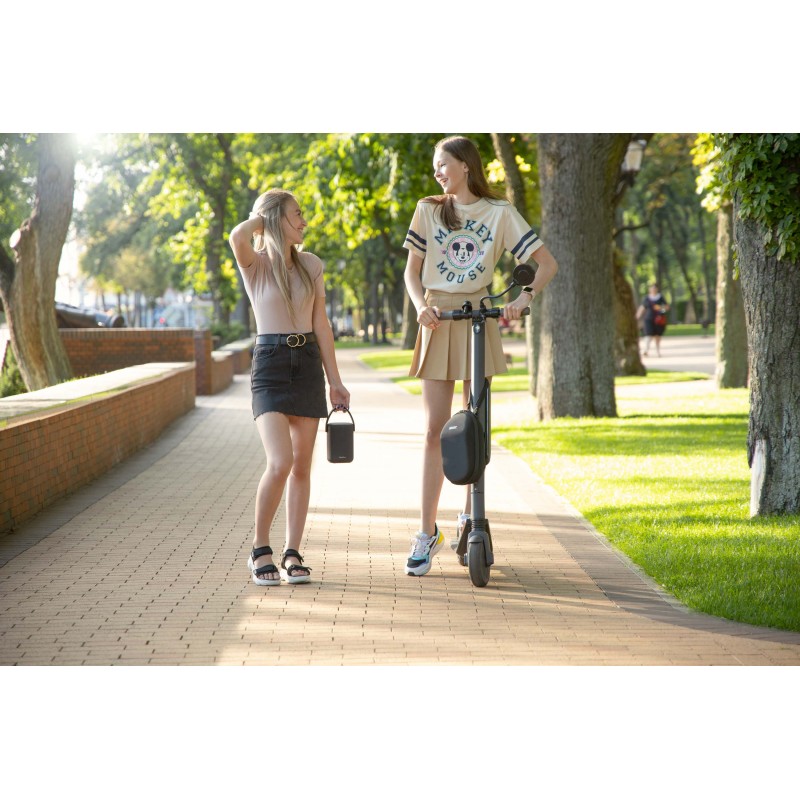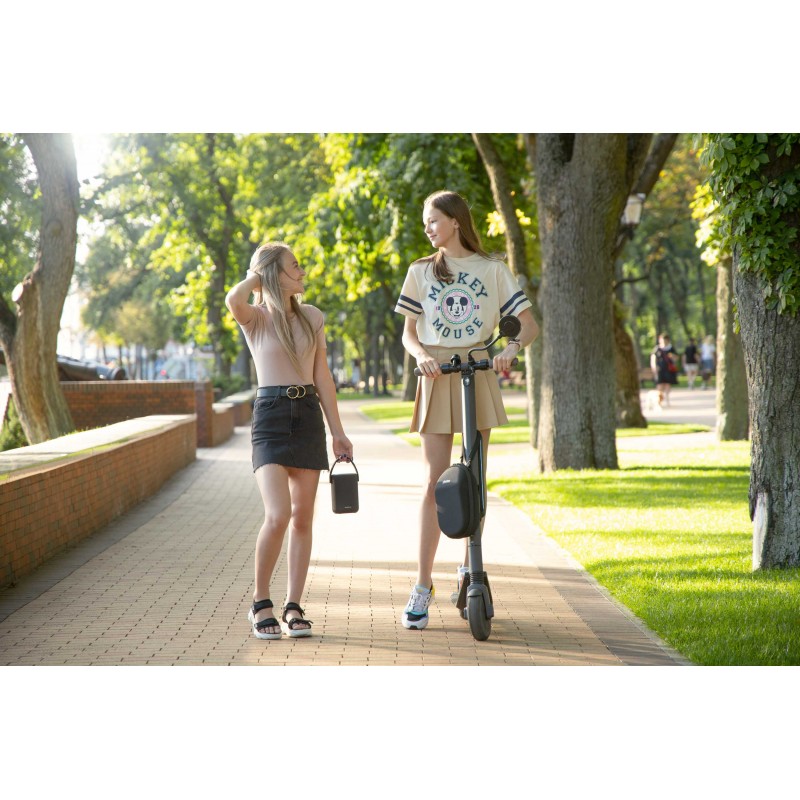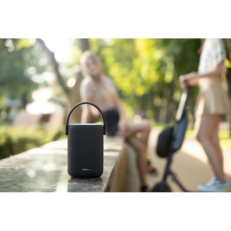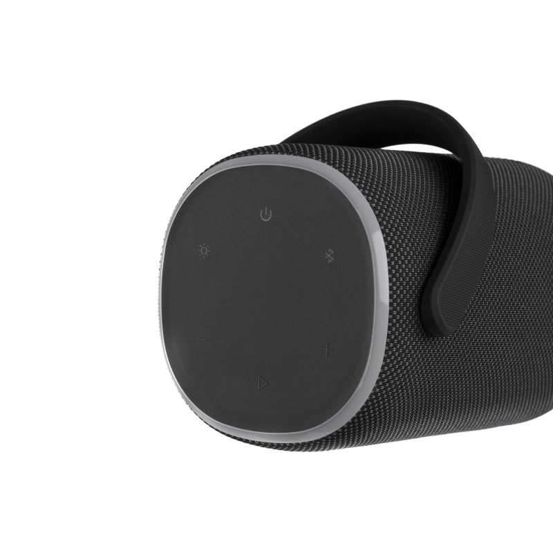Ба більше, акустичну систему можна використовувати ще і як повербанк! Розмір колонки – 110 × 110 × 168 мм, її корпус захищено за стандартом IPX7. На верхній панелі розташовані кнопки керування: багатофункціональна кнопка MFB, регулятори гучності/переключення треків, а також кнопки живлення, підсвічування та підключення через Bluetooth. Щодо інтерфейсу: передбачено вихідний рознім USB-A, для заряджання – USB-C і світловий індикатор стану батареї.