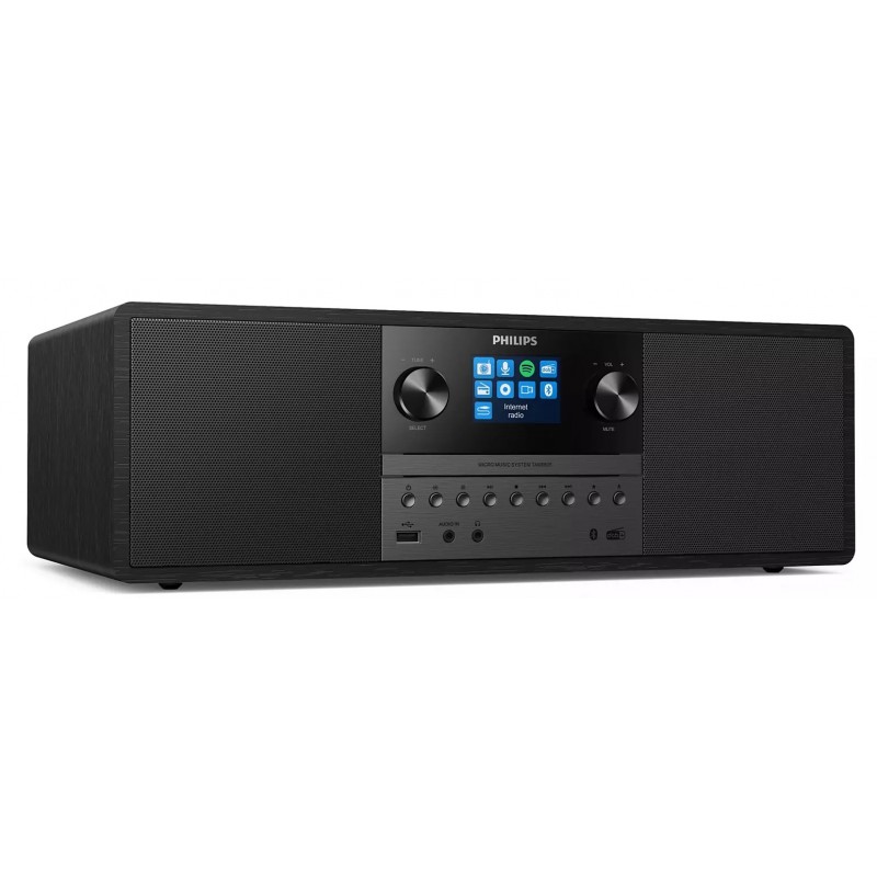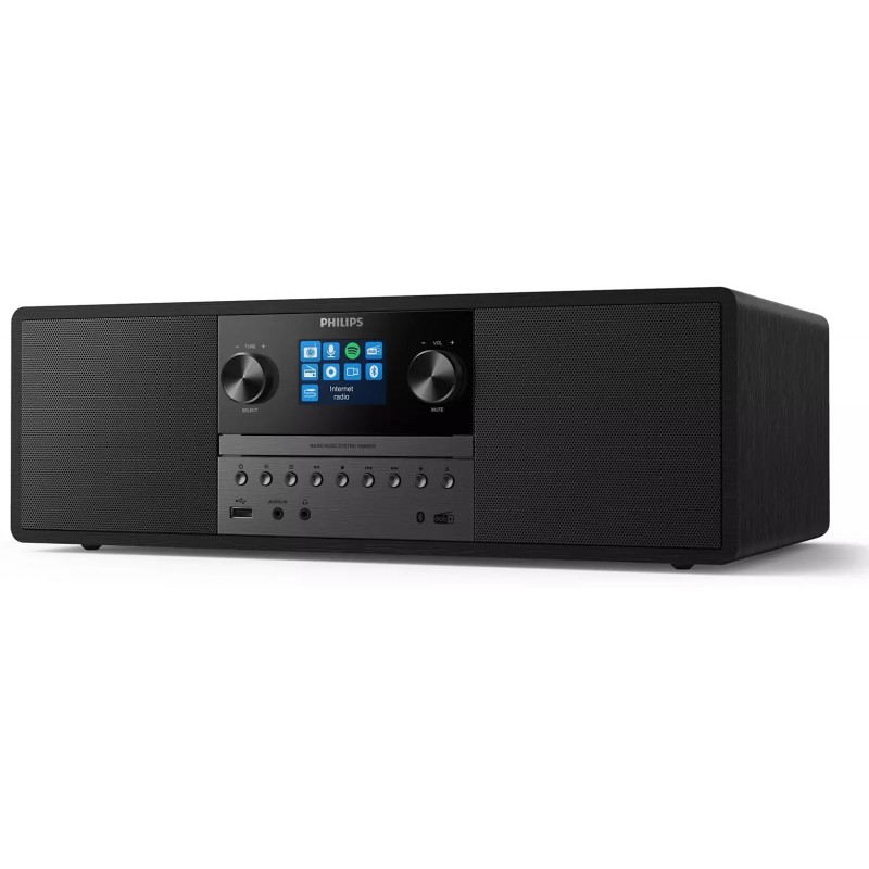 Ця мікросистема з живленням від мережі змінного струму буде чудово виглядати в будь-якому інтер'єрі. Радіус дії бездротового підключення Bluetooth становить 10 метрів, а USB-порт дозволяє заряджати мобільний пристрій. Простий у використанні пульт дистанційного керування дозволяє легко налаштовувати функції.