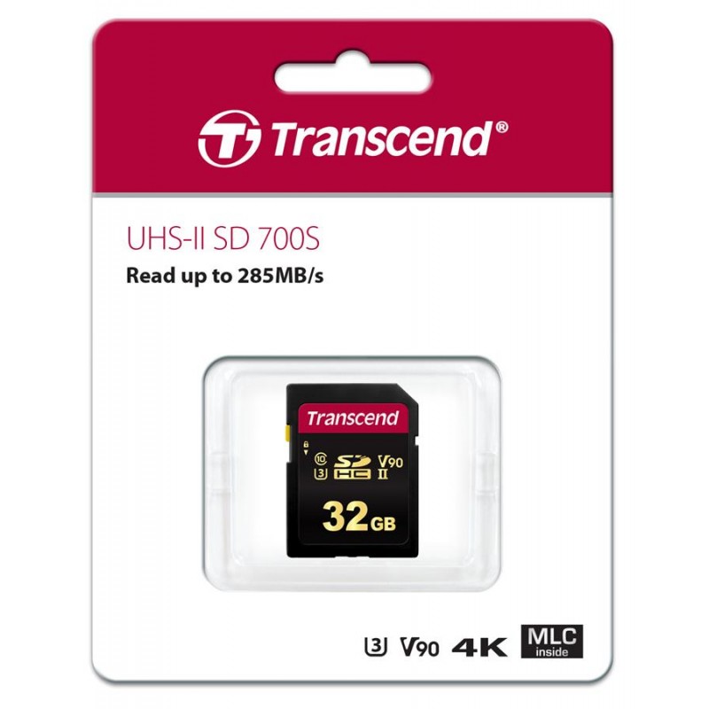 Карти пам'яті Transcend SDXC/SDHC 700S відповідають як стандарту UHS-II Speed Class 3 (U3), так і вимогам UHS Video Speed Class 90 (V90) для запису відео у форматі 4K Ultra HD, забезпечуючи швидкості читання і запису до 285 і 180 МБ/с, відповідно.