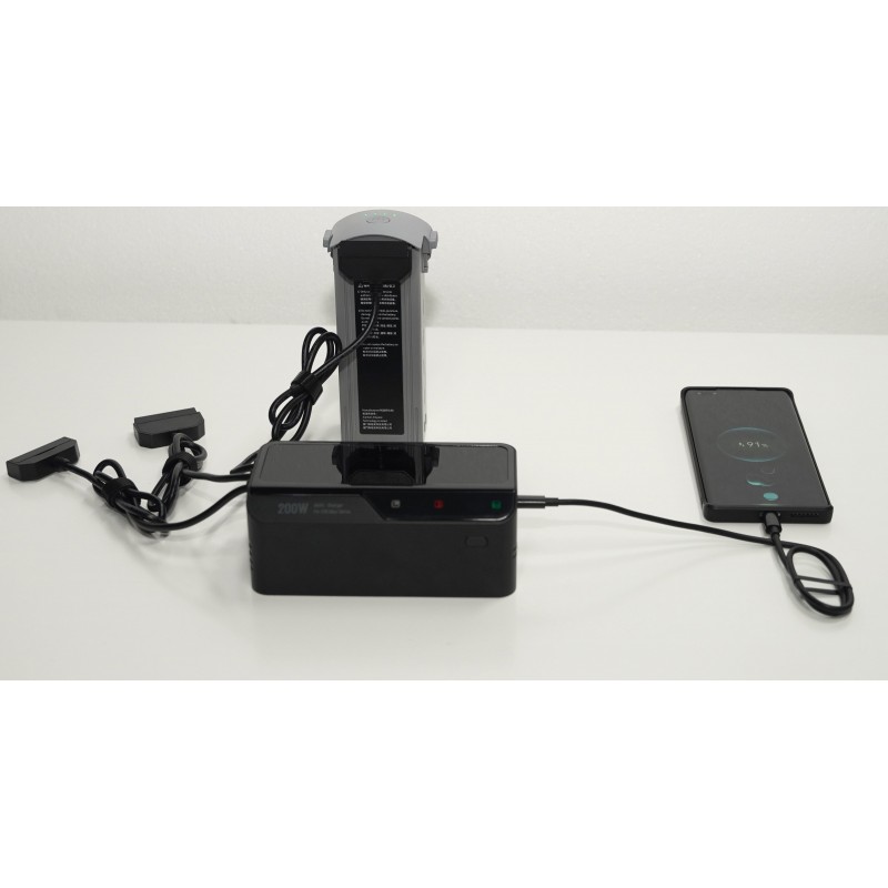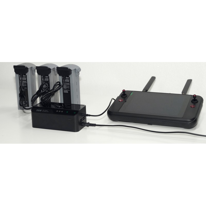 Мультизарядний пристрій здатний заряджати до трьох акумуляторів одночасно. Ця функція особливо корисна для користувачів, які потребують декількох батарей для тривалих польотів або зйомок. Вона усуває необхідність послідовного заряджання та зменшує час простою.