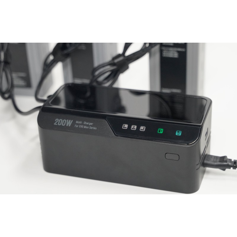 Мультизарядний пристрій здатний одночасно заряджати як інтелектуальний контролер, так і батареї. Ця функція дозволяє користувачам оптимізувати час заряджання і гарантує, що всі необхідні пристрої будуть готові до роботи.