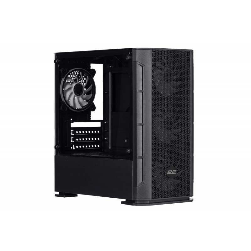 2E gaming CALLEO (GB700) підходить як для складання компактного домашнього ПК, так і потужної ігрової системи, що витримує великі системні навантаження, має стильний дизайн та і продуману вентиляцію. Максимальна довжина встановлюваної відеокарти - 320 мм. Корпус дозволяє встановити достатню кількість накопичувачів і велику кількість плат розширення (4 слоти розширення). Конструкція та розміри корпусу дозволяють встановити 6 вентиляторів (на верхню панель додатково до вже встановлених трьох) і охолодження для процесора максимальною висотою до 150 мм.