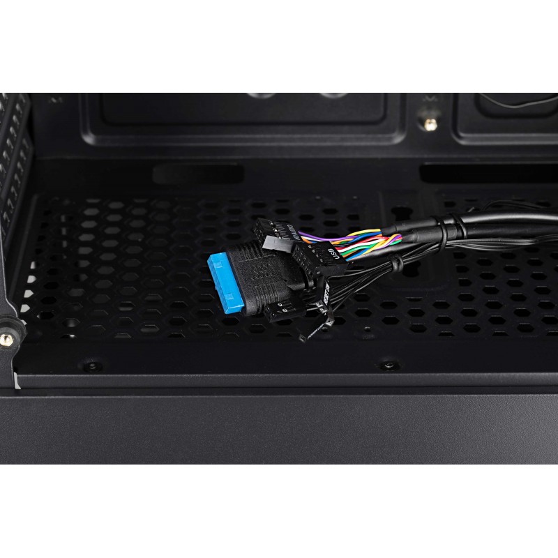 Корпус адаптовано під можливість монтажу системи рідинного охолодження на передню панель - радіатори 240мм, задню – один 120 мм, додатково передбачено простір для акуратного розміщення кабелів. На верхній/нижній панелях – знімні пилові магнітні фільтри. Для підключення, керування і контролю комп'ютерною периферією та підсвіткою в арсеналі корпусу є роз'єми 1xUSB 3.0,2xUSB 2.0 HD AUDIO+MIC, кнопки і індикатори Power, Reset, Power LED, HDD LED, додатково ARGB контролер. У комплектацію моделі включені інструкція і набір кріпильних елементів.