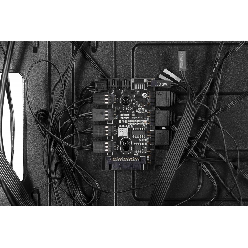 Для підключення, управління та контролю за комп'ютерною периферією та підсвічуванням, в арсеналі корпусу є роз'єми 1xUSB 3.0,2xUSB 2.0 HD AUDIO+MIC, кнопки та індикатори Power, Reset, Power LED, HDD LED, додатково ARGB концентратор з можливістю підключення до материнської плати.