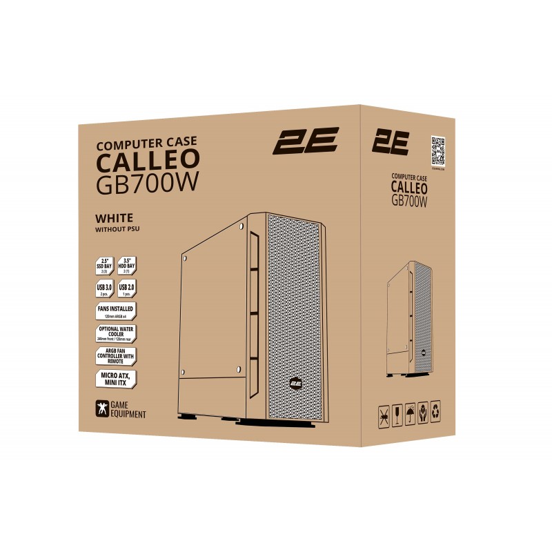 2E Gaming Корпус Calleo GB700W без БЖ 2xUSB3.0, 1xUSB2.0, 4x120мм ARGB, VGA 320мм, LCS ready, контролер з пультом, TG Side Window, mATX, білий