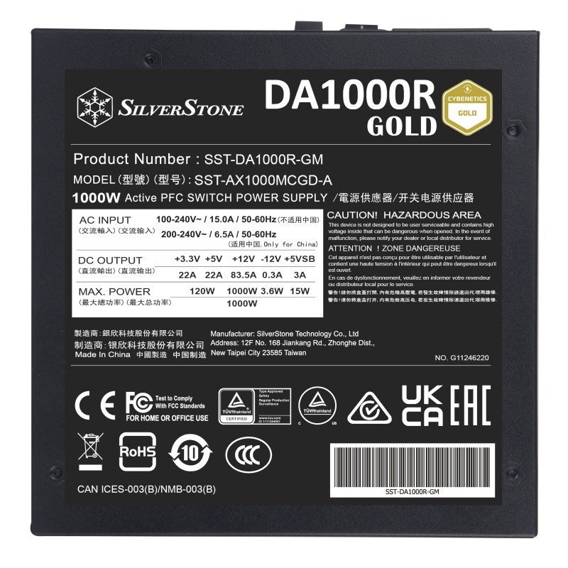 SilverStone Блок живлення Decathlon Cybenetics DA1000R-GM (1000W), >90%, 80+ Gold, 135mm