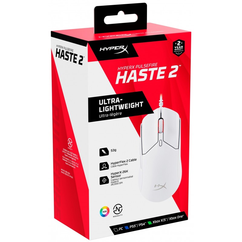 Pulsefire Haste 2 оснащена фірмовими перемикачами HyperX, які забезпечують тактильний і звуковий зворотний зв'язок на кожне приємне натискання і розраховані на термін служби до 100 мільйонів натискань. Отримайте найкращу реакцію та точність завдяки частоті опитування Pulsefire Haste 2 8000 Гц. Ви також насолоджуватиметеся чудовим фізичним контролем над мишею завдяки накладкам, що входять до комплекту, надгнучкому паракордовому кабелю та глайдам з чистого тефлону. Отримайте максимальну віддачу від кожного руху миші з програмним забезпеченням HyperX NGENUITY: створюйте макроси для 6 програмованих кнопок, налаштовуйте параметри DPI та персоналізуйте RGB-підсвітлення.
