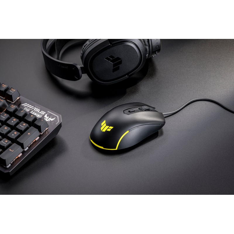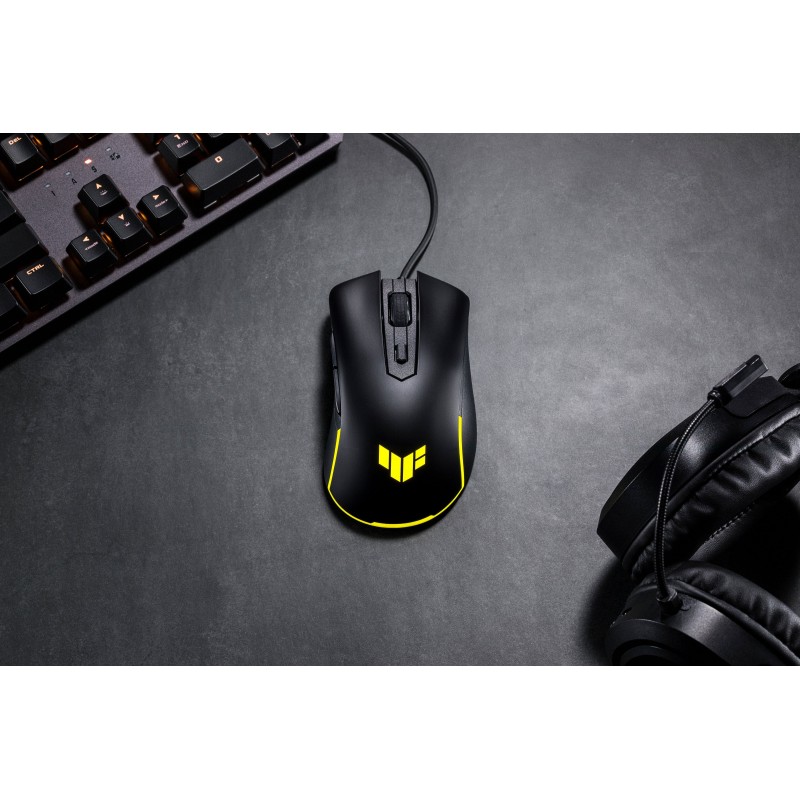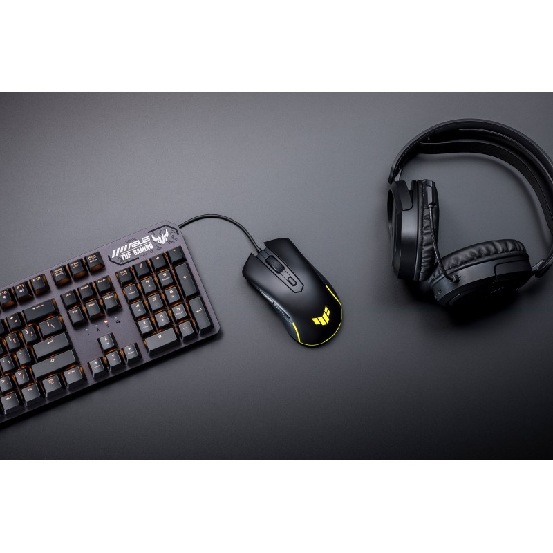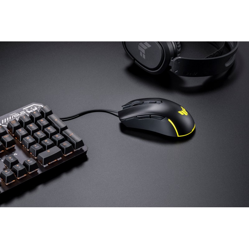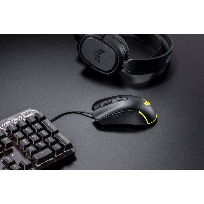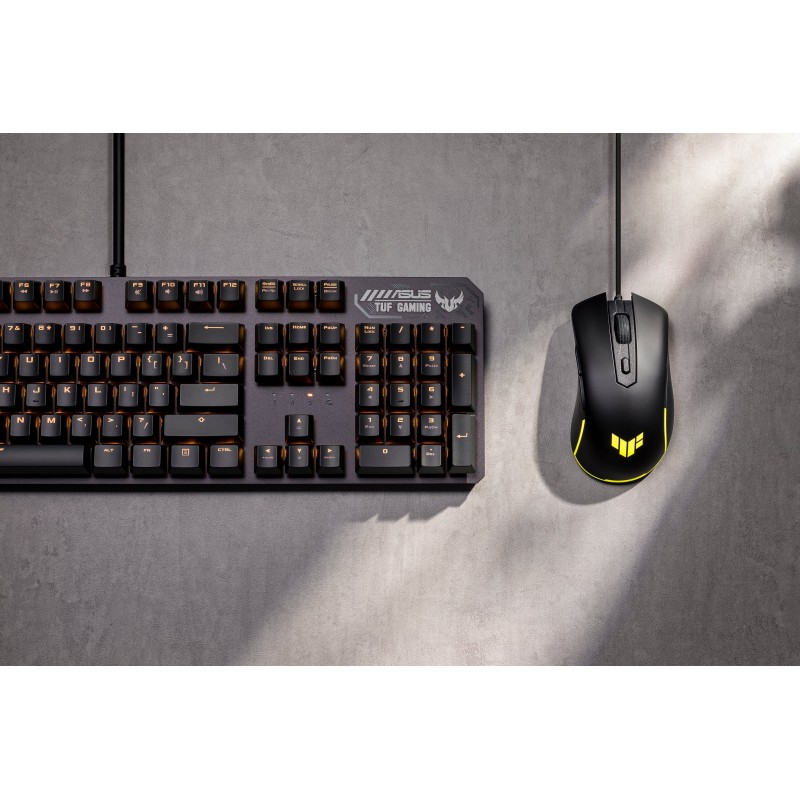 Оптичний сенсор TUF M3 Gen II підтримує роздільну здатність від 100 до 8000 точок на дюйм, забезпечуючи точність і швидкість, необхідні для керування в грі. Перемикач у верхній частині миші дозволяє миттєво перемикатися між чотирма рівнями DPI. А завдяки частоті опитування 1000 Гц приціл на екрані слідує за кожним рухом із дивовижною точністю.