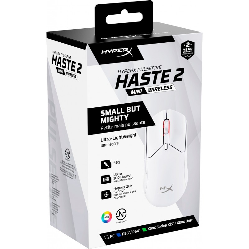 HyperX Миша Pulsefire Haste 2 mini, RGB, USB-A/WL/BT, білий