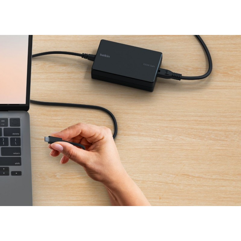 Belkin Зарядний пристрій мережевий 100Вт USB-С GAN PD PPS, кабель USB-C 2м, чорний OEM