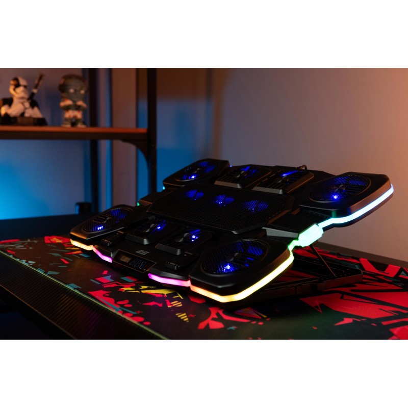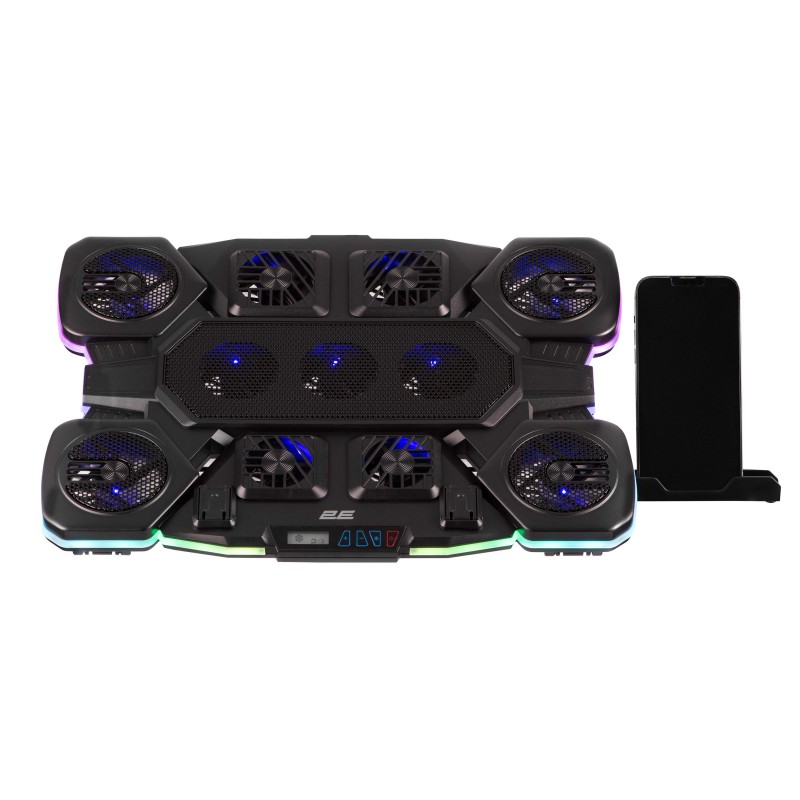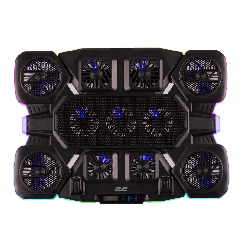 Підставку 2E GAMING Cooling Pad CPG-011 оснащено 11 вентиляторами різного розміру зі швидкістю обертання до 2 800 об/хв. Завдяки поєднанню великих (діаметром 70 × 70 × 15 мм – 4 шт.) і малих вентиляторів (50 × 50 ×15 мм – 2 шт., 60 × 60 ×15 мм – 5 шт.) забезпечено рівномірне охолодження всієї поверхні ноутбука та оптимальну температуру навіть у разі великих навантажень, як-то ігрові сесії, відеомонтаж або виконання складних професійних завдань.