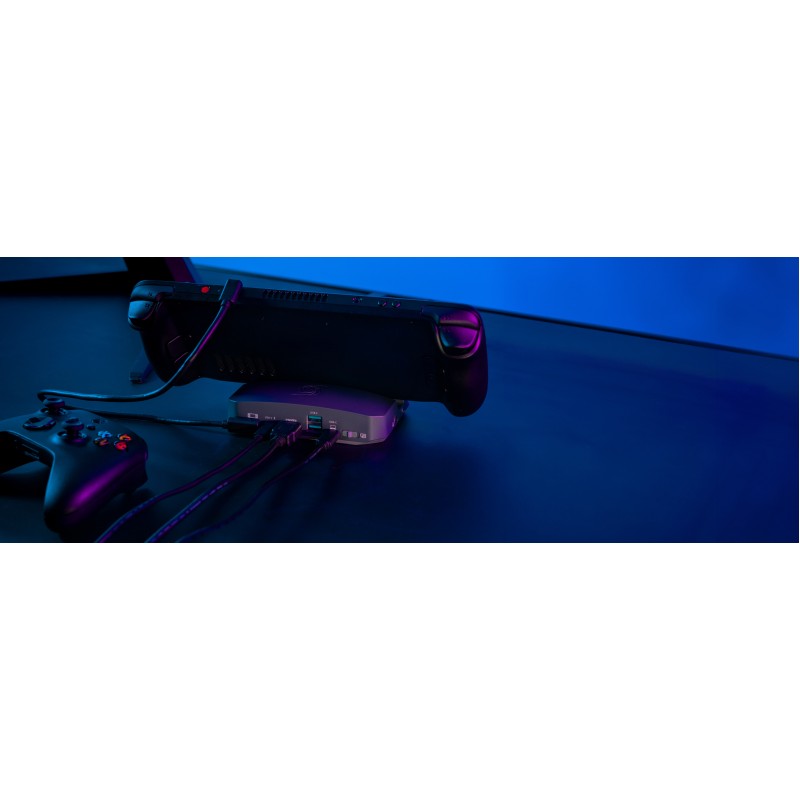 Неперевершена зручність. X'TRA GO GC515 функціонує як док-станція, забезпечуючи безперебійне підключення ваших пристроїв і дозволяючи легко під'єднати мишу, клавіатуру, контролер, мікрофон або інші периферійні пристрої. Вона також надійно утримує різні ручні консолі та мобільні пристрої, що робить її універсальним рішенням «все-в-одному», яке покращує інтеграцію.