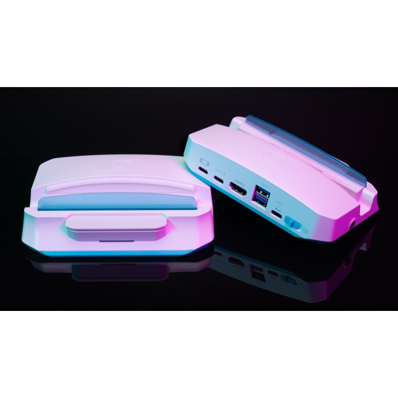 Неперевершена зручність. X'TRA GO GC515 функціонує як док-станція, забезпечуючи безперебійне підключення ваших пристроїв і дозволяючи легко під'єднати мишу, клавіатуру, контролер, мікрофон або інші периферійні пристрої. Вона також надійно утримує різні ручні консолі та мобільні пристрої, що робить її універсальним рішенням «все-в-одному», яке покращує інтеграцію.
