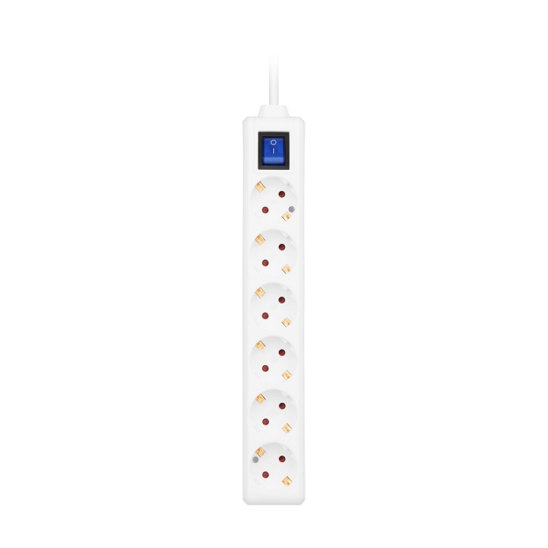 2E Подовжувач мережевий 6хТип F, 3х1.5мм кв, 16A, 3м, білий