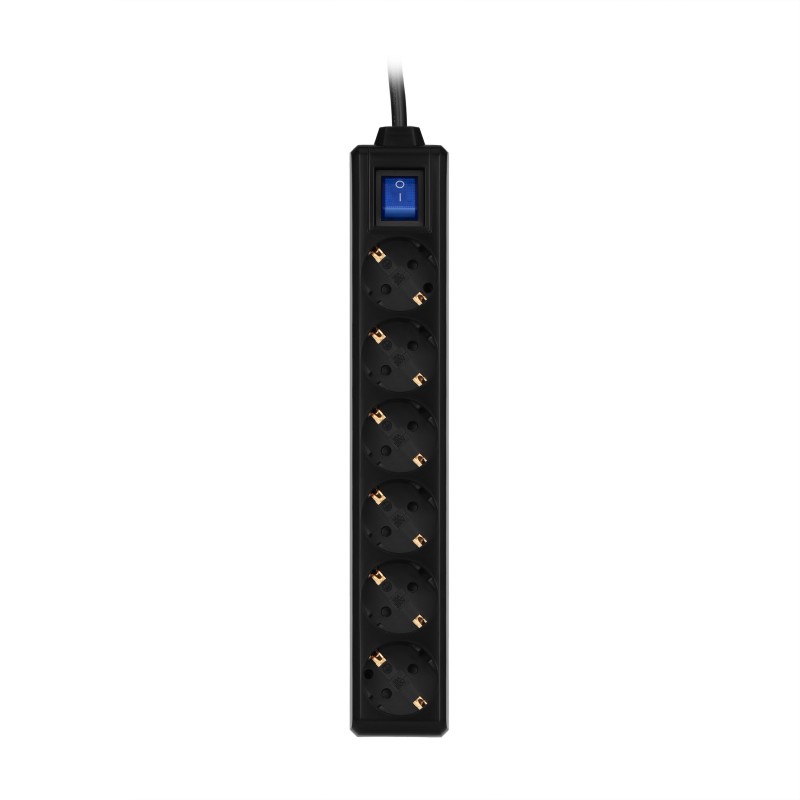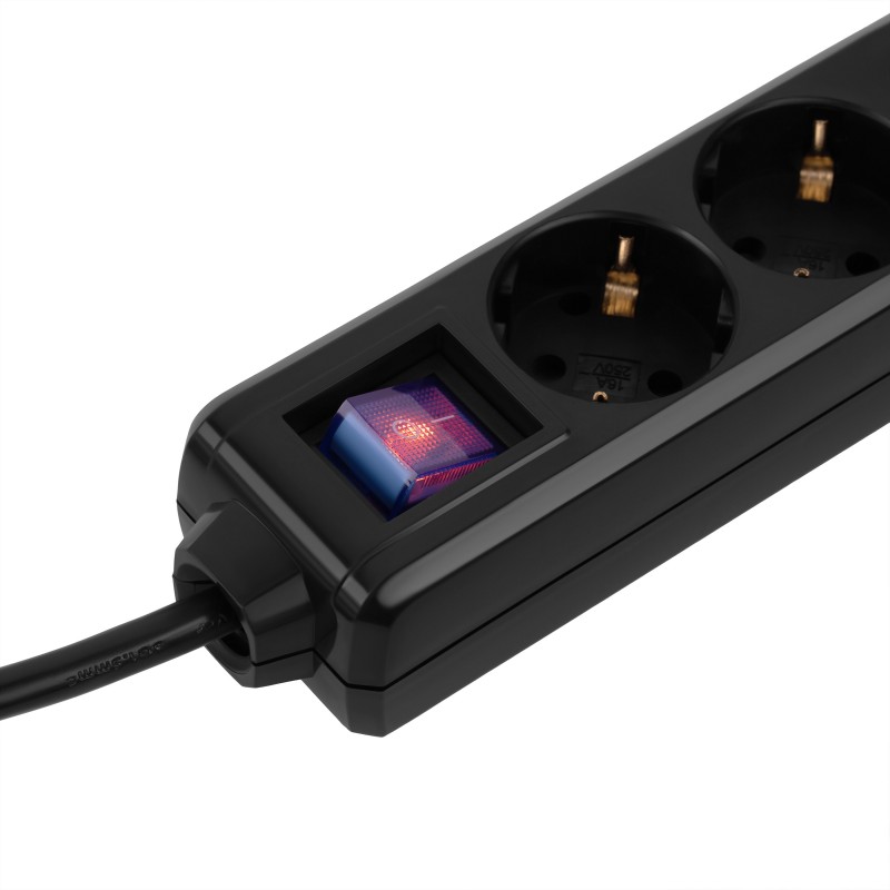 2E Подовжувач мережевий 6хТип F, 3х1.5мм кв, 16A, 3м, чорний