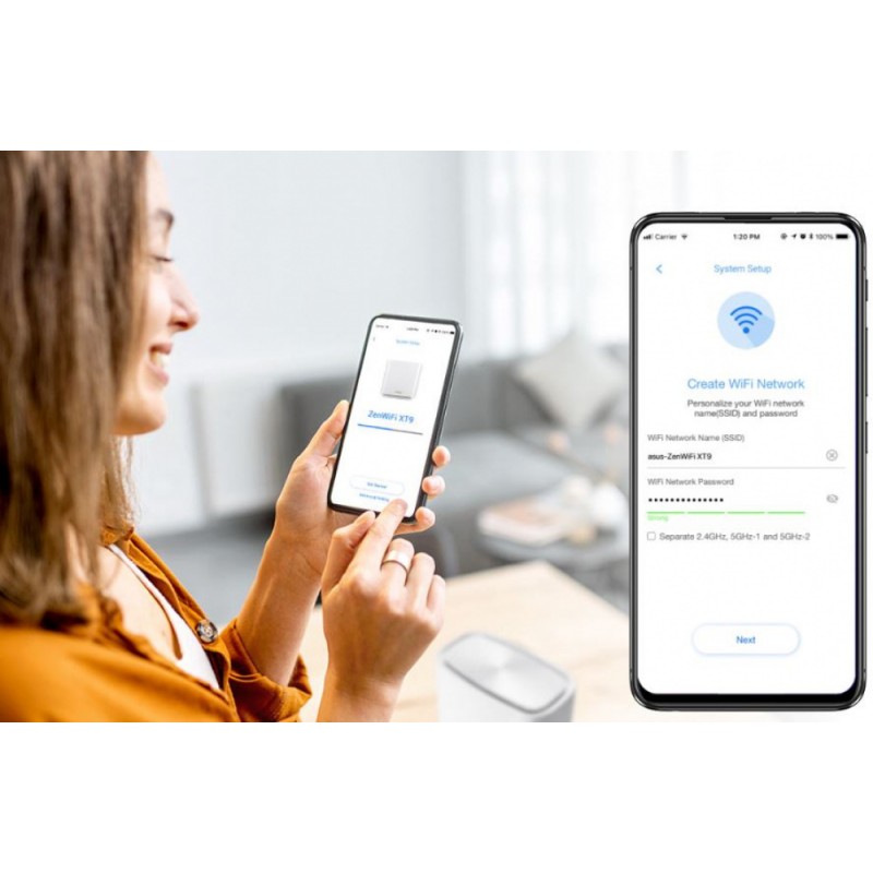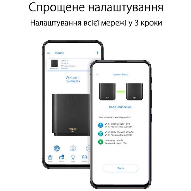 В автоматичному режимі система ZenWiFi XT9 автоматично розподіляє пристрої між бездротовими діапазонами Wi-Fi, що підтримуються, для оптимальної роботи пристроїв у мережі.