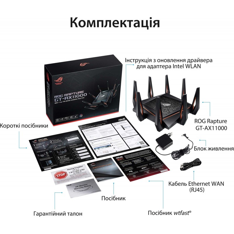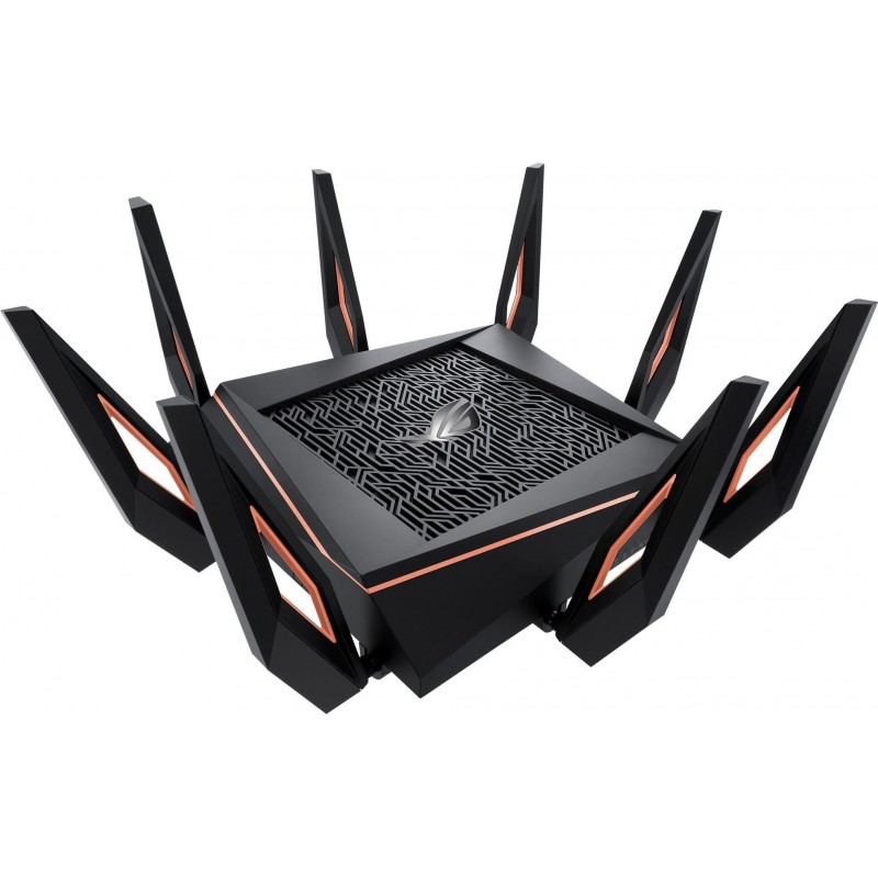 ROG Rapture GT-AX11000 - це бездротовий маршрутизатор, розроблений спеціально для любителів комп'ютерних ігор. Високошвидкісна передача даних по бездротовій мережі Wi-Fi, бездоганно стабільна робота під важкими навантаженнями і потужні засоби інформаційної безпеки поєднуються в ньому з інноваційними геймерським оптимізаціями. Програмний інтерфейс Gaming Center, оформлений в ексклюзивному стилі ROG, пропонує повний контроль над усіма функціями пристрою.