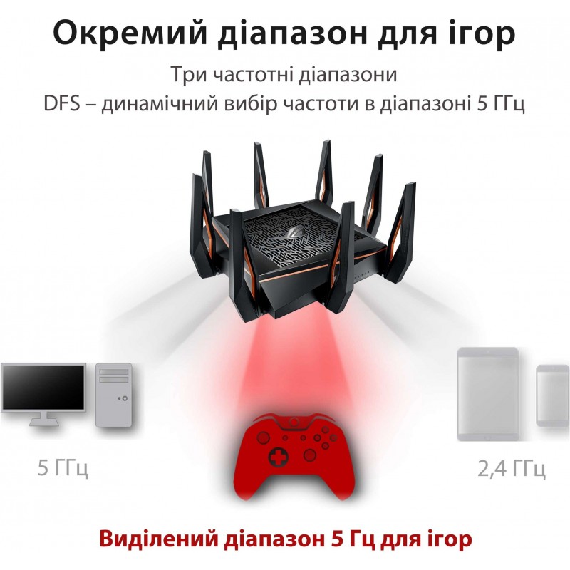 Завдяки підтримці відразу трьох частотних діапазонів даний маршрутизатор дозволяє виділити один діапазон з частотою 5 ГГц виключно для ігрового трафіку, щоб інші підключені до мережі пристрою не уповільнювали швидкість з'єднання в іграх. Крім того, технологія динамічного вибору частот DFS розблокує в діапазоні 5 ГГц відразу 15 каналів, щоб розширити можливості підключення бездротових пристроїв.