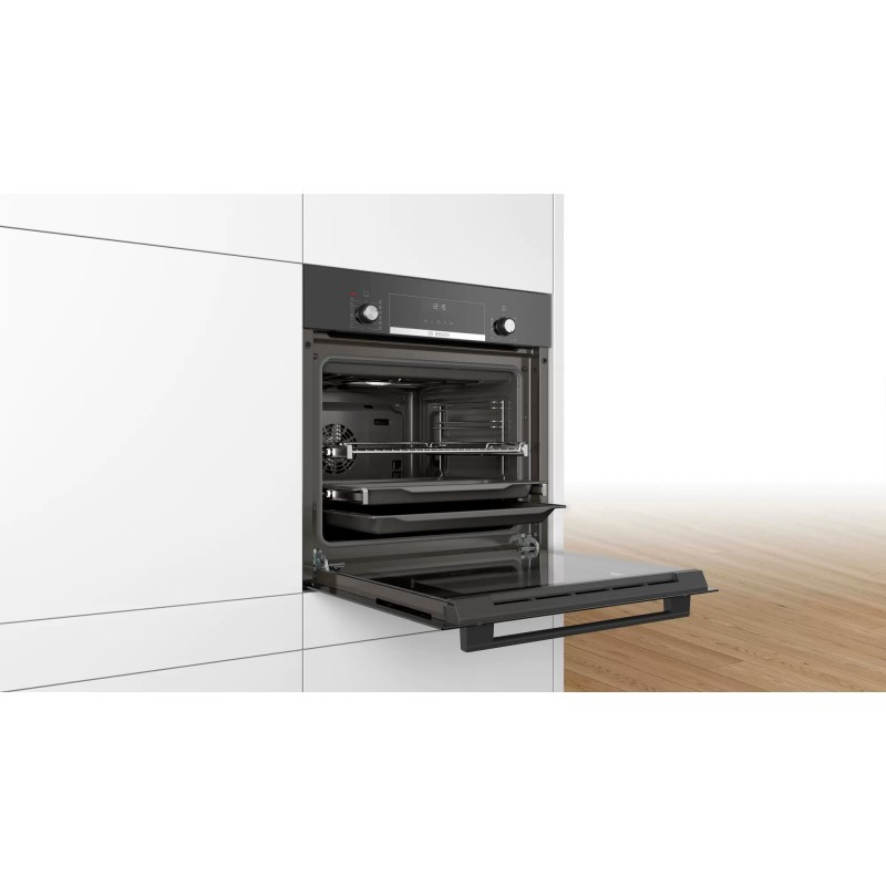 конвекція, вентилятор охолодження, дисплей, галогенне освітлення, 2 рівня телескопічних напрямних, швидке розігрівання, допоміжна система приготування страв: AutoPilot, електронний годинник, повністю скляна внутрішня поверхня дверцят, контроль нагрівання |