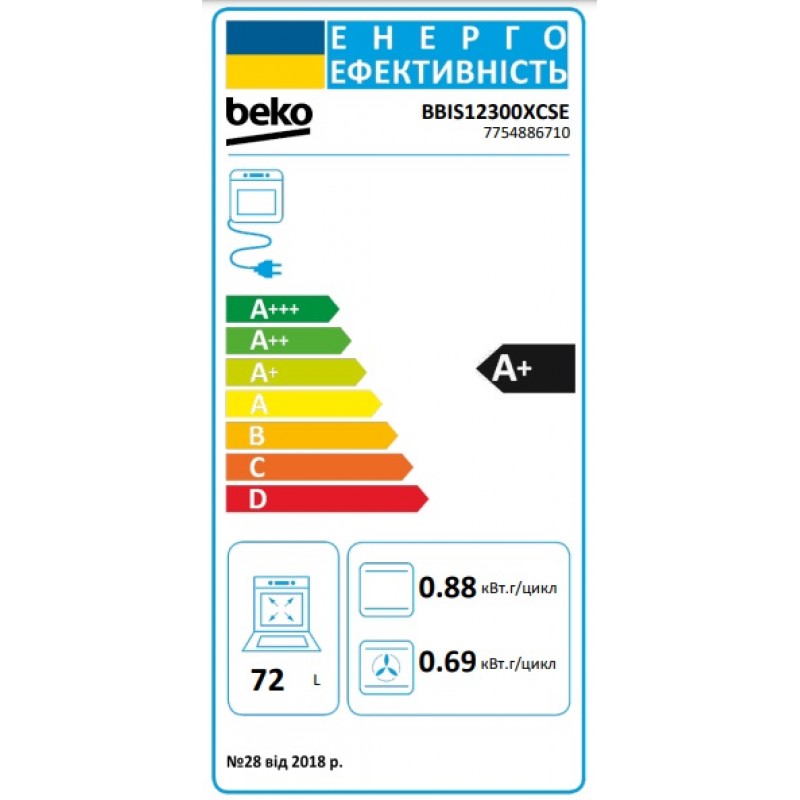 Beko Духова шафа електрична, 72л, A+, дисплей, конвекція, телескоп, нерж