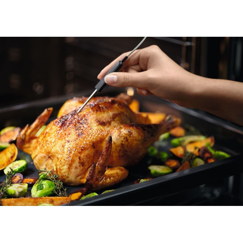 Завдяки нашому термощупу ви можете досягти чудових результатів щоразу. Він дозволяє відслідковувати процес готування, вимірюючи внутрішню температуру продукту. Він навіть повідомить вас про те, коли ваша страва приготовлена до потрібної температури, і припинити готування.