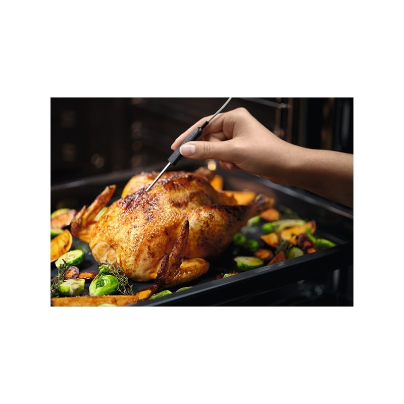 Завдяки нашому термощупу ви можете досягти чудових результатів щоразу. Він дозволяє відслідковувати процес готування, вимірюючи внутрішню температуру продукту. Він навіть повідомить вас про те, коли ваша страва приготовлена до потрібної температури, і припинити готування.