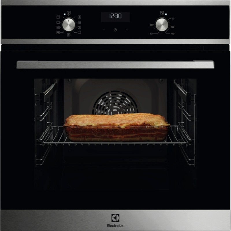Electrolux EOF5F50BX — це вбудована духова шафа серії SurroundCook, яка забезпечує рівномірний розподіл тепла завдяки продуманій системі вентиляції. З об’ємом у 65 літрів, вона ідеально підходить як для щоденного приготування їжі, так і для святкових застіль. Різноманітність режимів роботи, включаючи традиційне запікання, конвекцію, гриль і турбо-гриль, дозволяє реалізовувати найскладніші рецепти.
