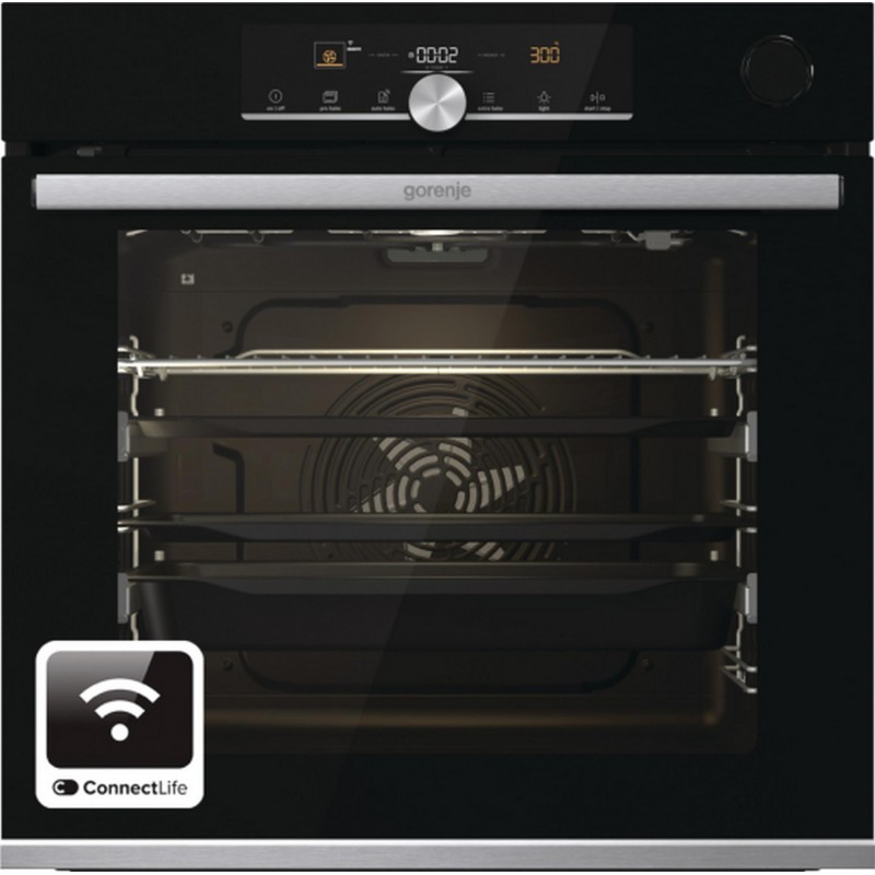 Gorenje Духова шафа електрична, 77л, A+, TouchFree, пара, дисплей, Wi-Fi керування, піроліз, готув. на різн рівнях, нерж