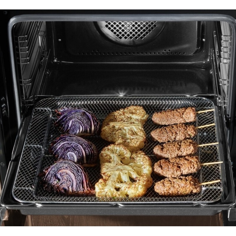 Хочете готувати страви з хрусткою скоринкою, але щоб вони були легкі та корисні? Тепер це реально за допомогою спеціального сітчастого дека AirFry, яке має антипригарне покриття. Це деко забезпечує правильну циркуляцію гарячого повітря, завдяки чому у ваших страв буде ідеальна хрустка скоринка, а всередині вони будуть соковитими. Насолоджуйтесь улюбленими стравами без додавання олії та необхідності перевертання страви в процесі смаження.