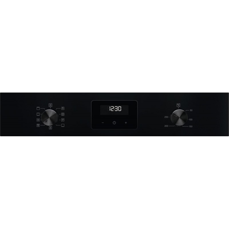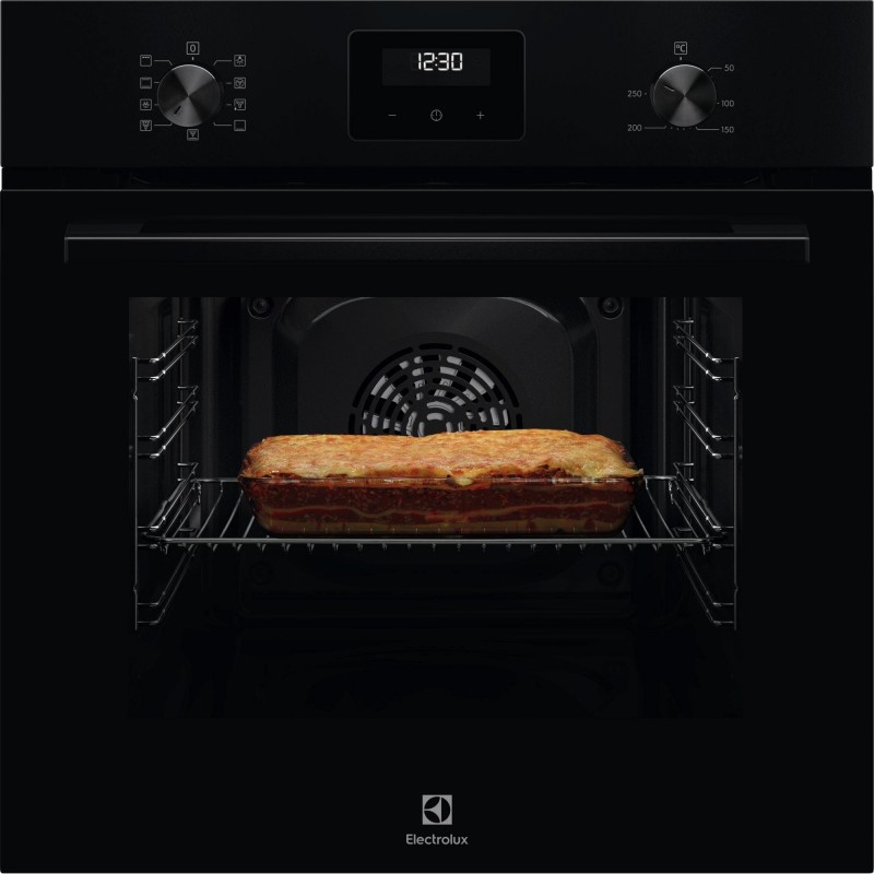 Electrolux LOF3H10BK — це високоякісна вбудована духовка з об'ємом 65 л та енергоефективністю класу A. Вона оснащена LED-індикатором та електронним таймером, що забезпечують точне керування часом. Телескопічні направляючі одного рівня роблять зручним витяг страви з глибини камери. Металева панель керування додає елегантності дизайну.