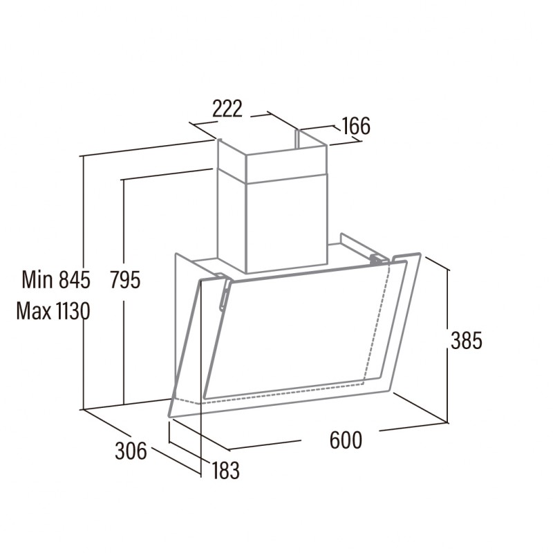 Cata Витяжка похила, 60см, 900м3г, VALTO 600 XGBK, чорний