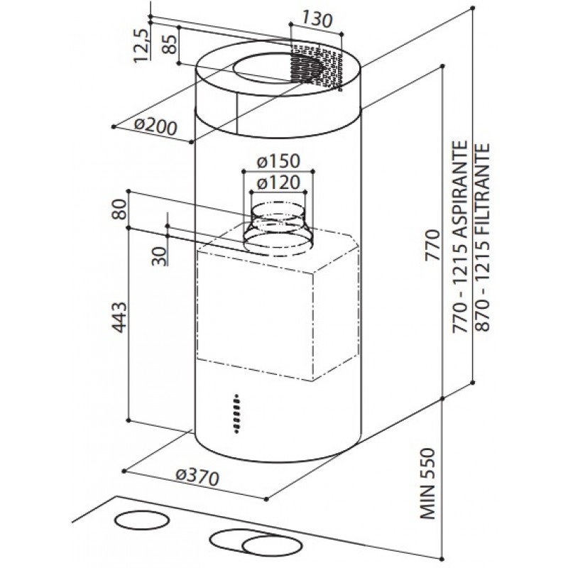 Faber Витяжка острівна, 37см, 1102м.куб/год, Cylindra Isola Ev8 X A37 Eln, нерж