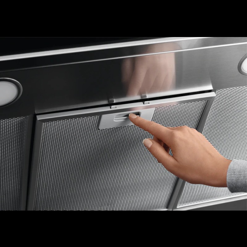 Наша стильна скляна панель управління повністю інтегрована. Електронні елементи управління дозволяють плавно та точно керувати налаштуваннями та режимами роботи витяжки.