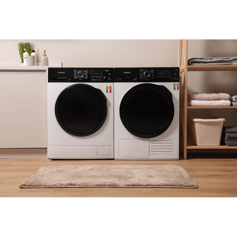 Маючи розмір 842 × 596 × 450 мм, машина забезпечить необхідним простором у приміщенні. Білий корпус із чорними елементами має сучасний вигляд і пасуватиме будь-де.