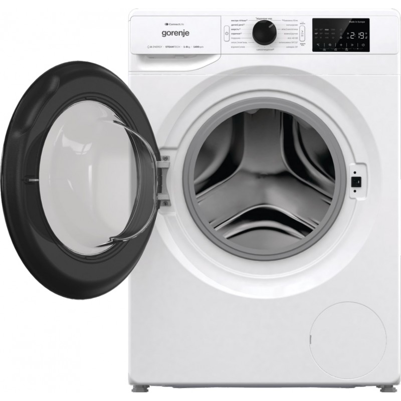 Gorenje Пральна машина фронтальна, 8кг, 1400, A+++, 55см, дисплей, інвертор, пара, Wi-Fi, білий