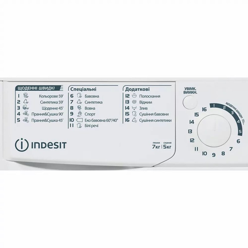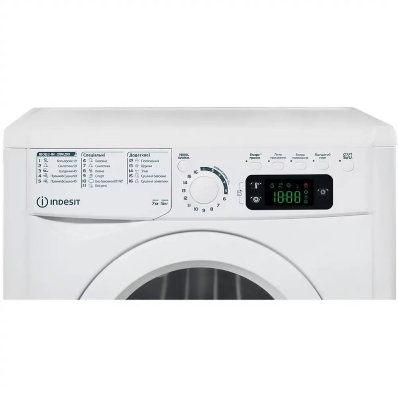 Прально-сушильна машина Indesit EWDE7528WEU поєднує в собі сучасні технології та зручність використання, забезпечуючи високоякісне прання та сушіння білизни. Завантаження до 7 кг для прання та 5 кг для сушіння дозволяє обробляти великі обсяги білизни, що ідеально підходить для сімейного використання.
