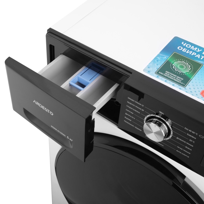 Пральна машина ARDESTO випере до 6 кг білизни за один цикл. Висока швидкість віджимання – до 1 200 об./хв – дає змогу мінімізувати час сушіння одягу. Клас енергоефективності А+++ – це найвищий стандарт, який демонструє здатність пристрою мінімізувати споживання електроенергії. З огляду на це пральна машина є ліпшим вибором для тих, хто прагне зменшити витрати на комунальні послуги без компромісів щодо якості прання.