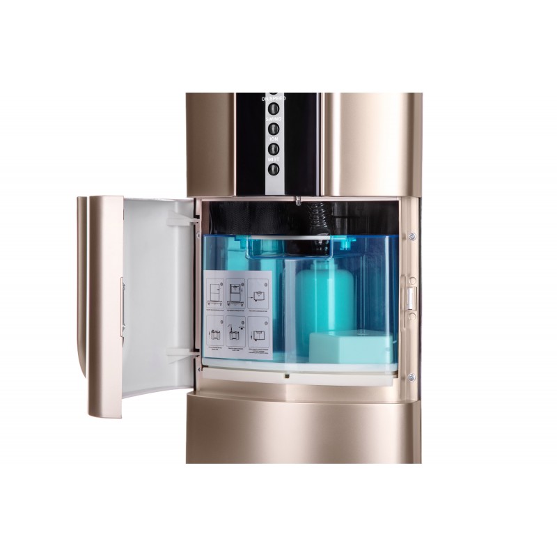 Для зволоження повітря та більш швидкого охолодження приміщення використовується ультразвукова технологія та передбачено резервуар для води з підсвічуванням.