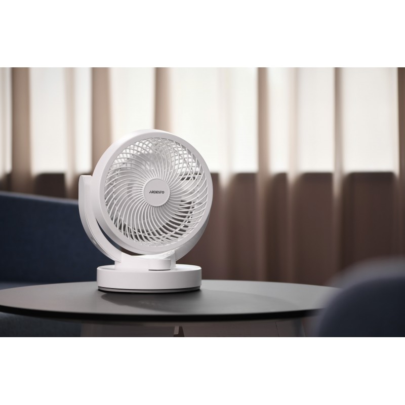 Попри компактний розмір, ARDESTO FT-B25W оснащено потужним 30-ватним двигуном, що забезпечує ефективний потік повітря для охолодження приміщень площею до 15 м². Завдяки трьом лопатям, які рівномірно розподіляють повітряні потоки, і механічному керуванню швидкістю роботу пристрою легко налаштувати відповідно до потреб.