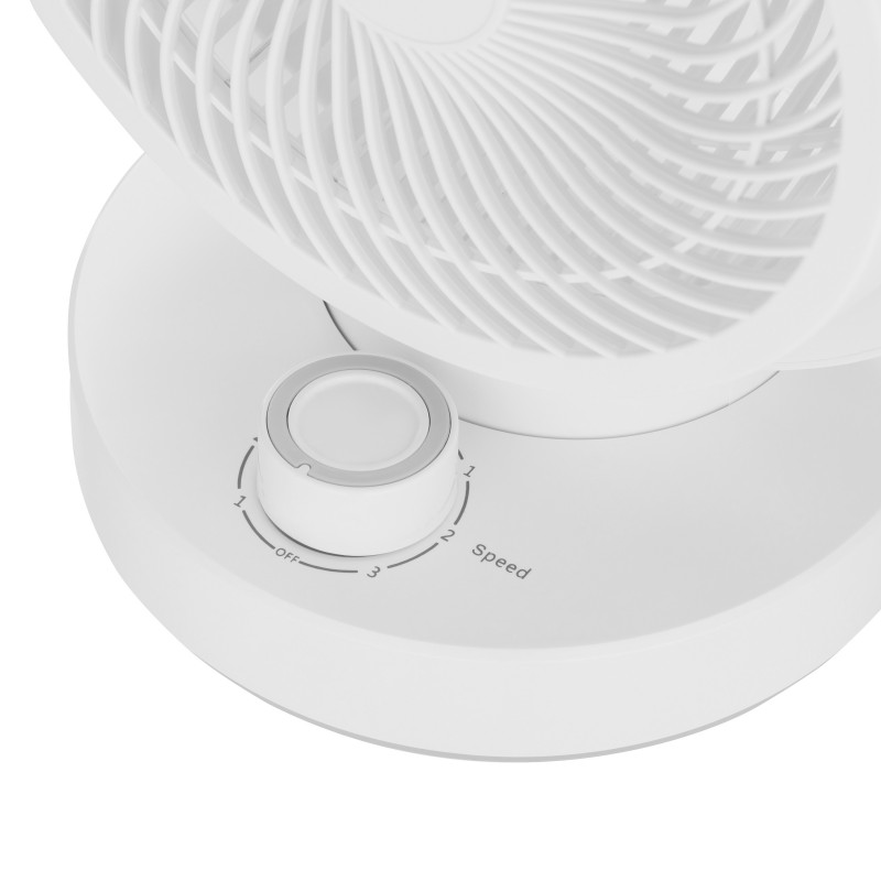 Зручний поворотний регулятор дає змогу вибрати один із трьох рівнів швидкості. Легка прохолода для приємної атмосфери, середня інтенсивність для комфортного мікроклімату чи максимальна потужність для швидкого охолодження.