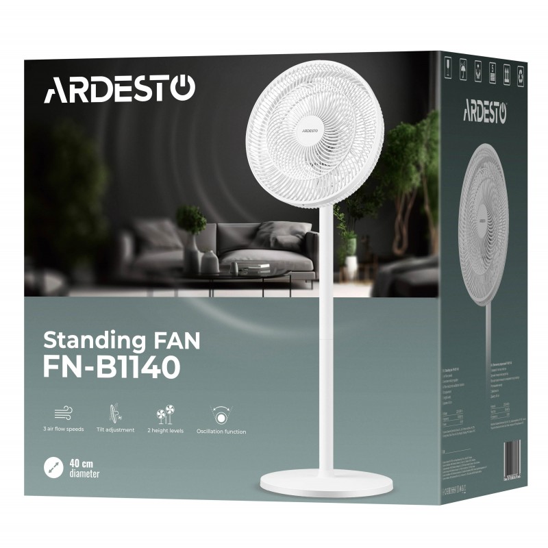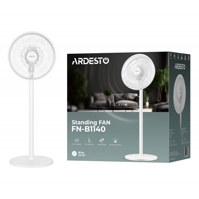Підлоговий вентилятор ARDESTO FN-B1140 елегантного білого кольору стане не лише ефективним засобом охолодження, а й гармонійним доповненням інтер’єру. Завдяки компактному розміру (37 × 112 × 37 см) і лаконічному дизайну модель пасуватиме до будь-якого приміщення, а прозорі лопаті додають відчуття легкості та естетичної витонченості. Міцна кругла опора забезпечує стійкість навіть за максимальної швидкості роботи.