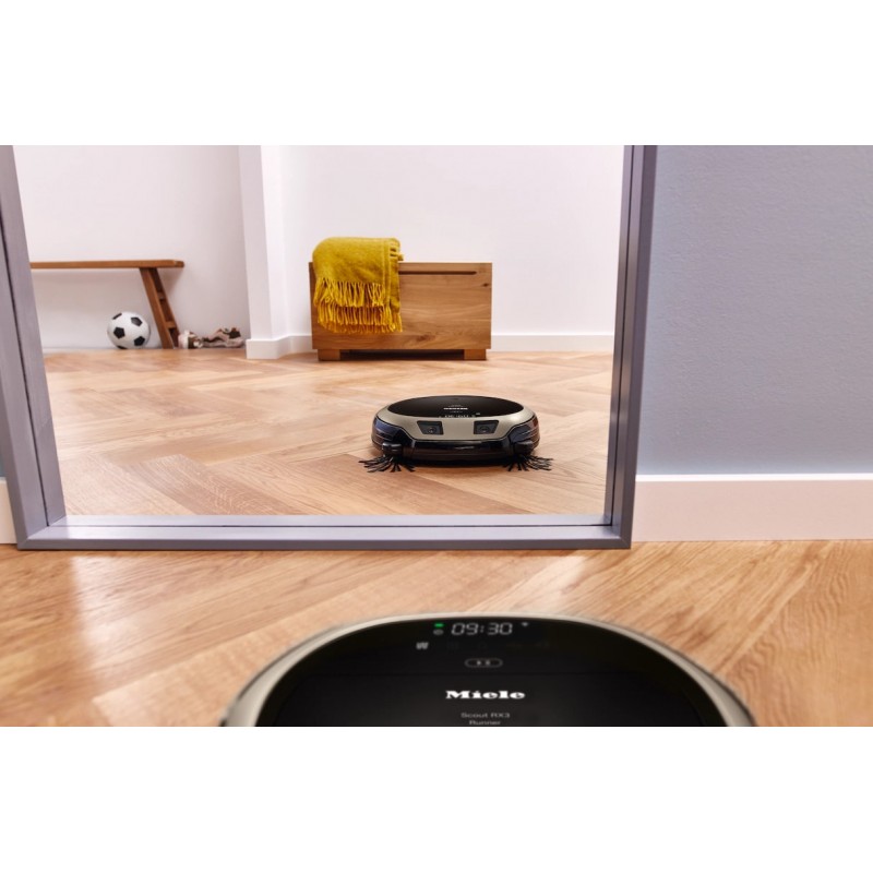 Керування роботом-пилососом Miele - це дитяча забава. Усього двома дотиками до сенсорного дисплея з чітким розташуванням кнопок ви обираєте потрібну програму і запускаєте Scout. Все інше він зробить сам. Крім того, ви можете вводити команди на пульті дистанційного керування, що входить до комплекту, не встаючи з крісла.