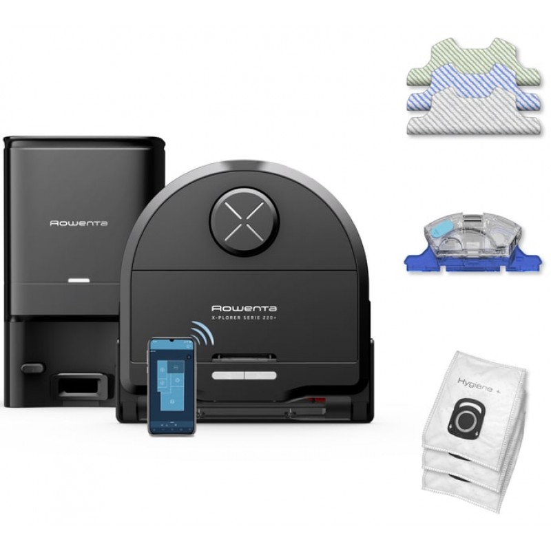 Rowenta Робот-пилосос миючий X-Plorer Serie 220+ Animal & Allergy Model, 5600ПаВт, h=9.7см, 0.35л, конт пил -0.22л, автон. робота до 120хв, чорний